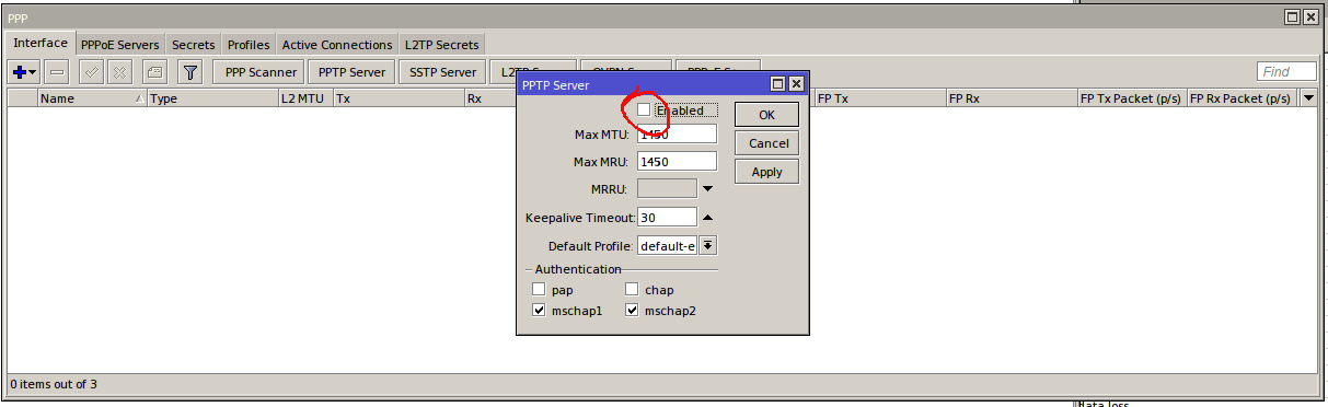 bl4ck4rch Posted February 12, 2017 Posted February 12, 2017 В лаборатных услуовиях пытаюсь настроить PPPTP-сервер. Есть mikrotik 911RB, на нём настроен проброс портов - смотрит 80 портом в Интернет (Screenshot_25.png). Включил pptp-сервер (Screenshot_23.png), создал сикрет (Screenshot_27.png) Добавил разрешающие правила в firewall (Screenshot_24.png) - для 1723 порта и протокола GRE, перетащил их наверх. Перепроверил по всем При подключении клиента (Win10) - такая ошибка (Screenshot_26.png) Пожалйста, подскажите новичку, где он свернул не туда) Вставить ник Quote