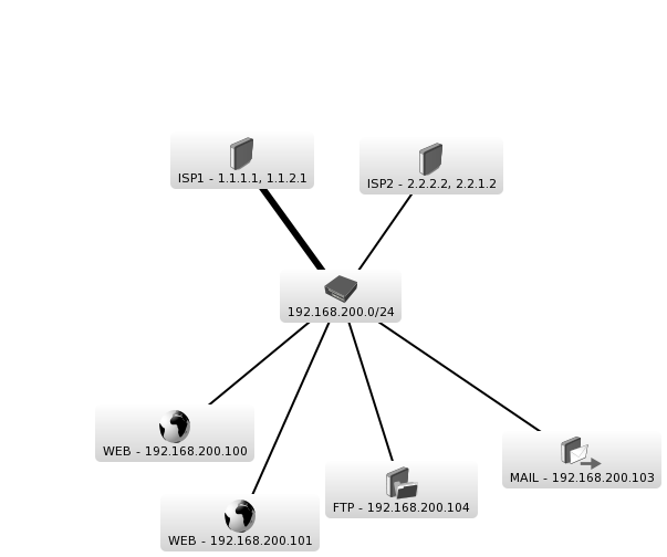 XuHT Posted February 12, 2017 Posted February 12, 2017 Заголовок банальный, но не очевидный. Расскажу Суть заключается в том, что есть два провайдера, подключенные к разным интерфейсам. Есть большая локалка со станциями и серверами. Активно используется NAT. А теперь немного в деталях и схематично (под рукой только дюдя). ISP1 - дает несколько IP адресов, пусть будут 1.1.1.1, 1.1.2.1 ISP2 - тоже несколько IP адресов, пусть будет 2.2.2.2, 2.2.1.2 Локальная сеть - 192.168.200.0/24 WEB1 сервер - 192.168.200.100 WEB2 сервер - 192.168.200.101 MAIL сервер - 192.168.200.103 FTP сервер - 192.168.200.104 Ну и остальные рабочие станции. Их много WEB1 должен быть доступен по 1.1.1.1, 2.2.2.2 WEB2 должен быть доступен по 1.1.2.1, 2.2.1.2 MAIL по 1.1.1.1, 2.2.2.2 FTP по 1.1.2.1, 2.2.1.2 - выходить должен под 1.1.2.1 Рабочие станции должны выходить под 1.1.1.1 Как правильно настроить NAT? Если с DST все понятно, то не ясно как настраивать общий маскарад и src-nat по отдельности. Как правильно настроить ip-route? И что работал hairpin nat. Немножко предисловия, которое должно было быть в начале. Рутер настроен, был подключен только один провайдер. Теперь подключили второй, и его нужно сделать основным. Ну и оставить первый для бекапа, хотя бы для локальной сети. Сейчас там 40 правил файрвола, 100 правил ната, 80 манглов. Черт ногу сломит. Вставить ник Quote