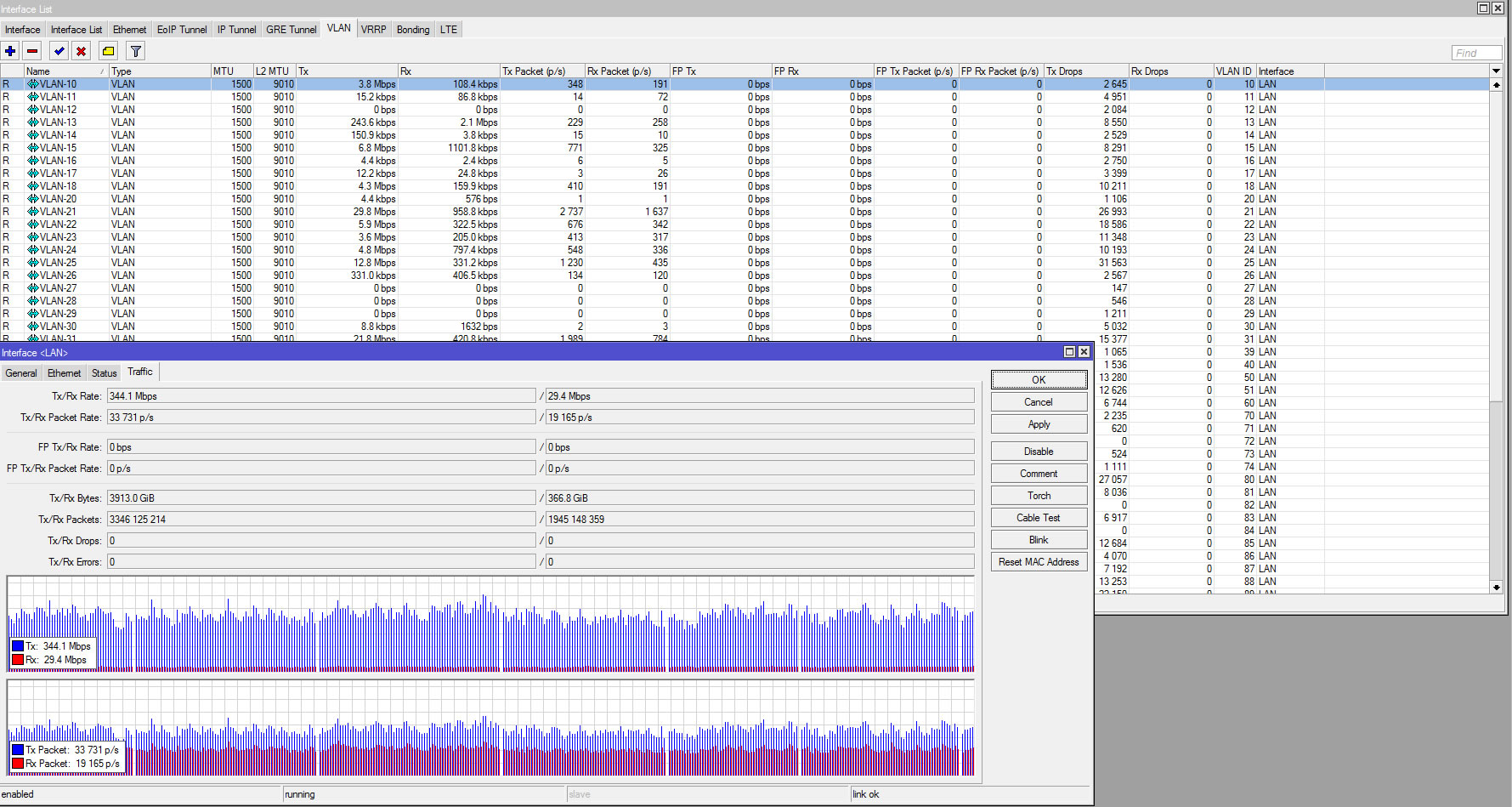 Olejon Posted May 18, 2017 Никогда дропы не vlan не росли, тут добавил после микротика свитч HP J4813a + гигабитный порт в него, на нем вланы добавляются + пропускаются с баз и вот теперь появились дропы на тх микротиковских вланов (vlan+pppoe) и на тх физических портов свитча HP причем на тегированом (общим для всех vlan ) порту дропов нет, стоит беспокоится или не парится, потери как обычно тыщи на три пара пингов теряется.. на физических интерфейсе микротика дропов тоже нет Share this post Link to post Share on other sites More sharing options...