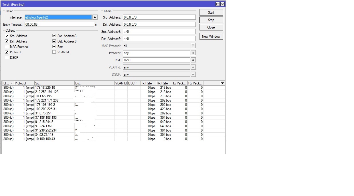 chetkiyparen Posted March 12, 2017 Posted March 12, 2017 Добрый день! С недавнего времени начались проблемы с подключением к микротику из вне, не всегда подключался, а если подключался, то вылетал периодически. Оказалось, что трафик идет через 8291 порт, который по умолчанию использует винбокс, поменял на другой порт и проблема исчезла, но думаю это до поры, когда и новый порт не начнут забивать. Сделал торч по 8291 на внешний интерфейс, а там куча трафика с постоянно меняющихся адресов по icmp. Такое ощущение, что как-будто торент через этот порт начал качать чей-то. Подскажите как можно отфильтровать его и если это чей-то торент, то как найти источник? В качестве решения проблемы пока вижу в правилах, которые каким-то образом ограничивали трафик по этому порту, чтобы можно было винбокс только использовать. Вставить ник Quote
