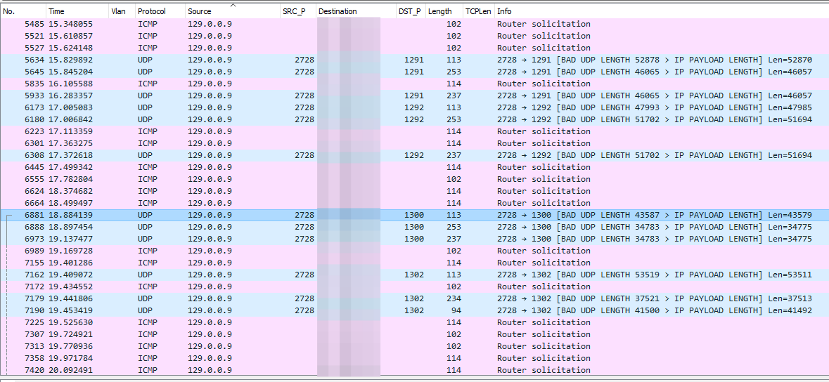 saaremaa Posted March 28, 2017 Стали замечать периодические всплески по пакетной нагрузке в vlan'e управления. Сняли dump и озадачились. Фиксируется трафик с IP ( подсеть 129.0.0.0/16) коих по определению не может быть в управляющем vlan'e и вообще в моей сети. Живут в этом vlan'e только микротики - абоненты никак попасть в него не могут. Стоят прошивки 6.33.хх Вставить ник Quote Ответить с цитированием Share this post Link to post Share on other sites More sharing options...