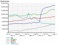 disappointed Posted April 4, 2017 Posted April 4, 2017 Вот ещё тенденция по РФ. Это графики с счётчиков посещений, кол-во по шкале это кол-во уникальных кук в течении месяца, грубо - браузеров, нужно делить на 2,5 примерно чтобы получить АБ. snvoronkov По вам где-то 6-6,5к, Верно? Вставить ник Quote