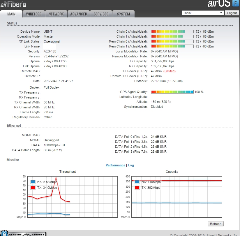 ben75 Posted April 17, 2017 5U это 2-3км с нормальной пропускной способностью (300-400мбит), все что дальше - пи*деж полный, таких людей лучше не слушать вообще. В настоящем имеем 600м и все уровни -52дбм (при усилении в 29), реальную полосу получаем 300+. Уточню - юстировали обе стороны по 2 раза, антенны направлены друг на друга точно) Вы не правы. Мы подняли канал 382 М/б 50х50 расстояние 17.5 км, полностью прямая видимость. Вставить ник Quote Ответить с цитированием Share this post Link to post Share on other sites More sharing options...