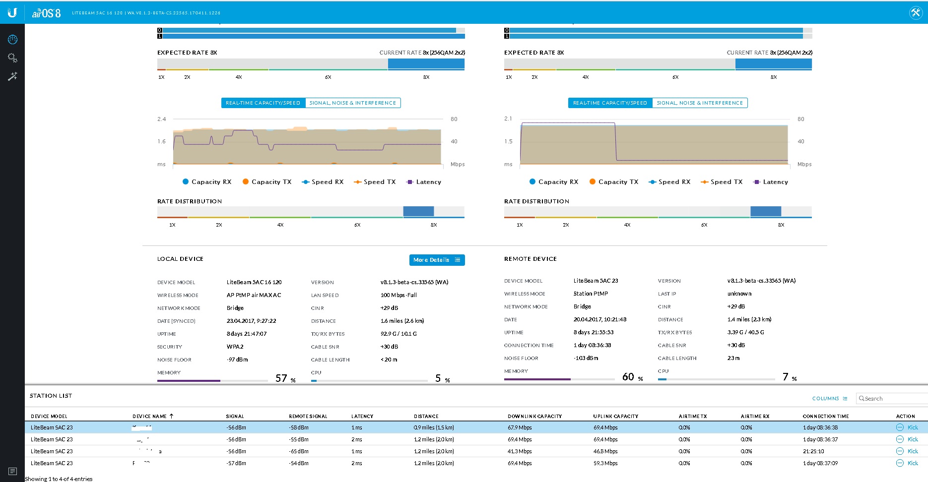 Olejon Posted April 23, 2017 Posted April 23, 2017 стоит база - LiteBeam 5AC 16 120 режим работы PtMP AirmaxAC подключено 4 клиента, в таблице (фото) задержка написана 1..2 мс, на деле же если пинговать антенну клиента пинг в районе 6...12 и если скажем при нагрузке в таблице пинг растет скажем до 10, то реальный меняется на 6....12+ эти 10... в не ац версиях на 5...6 аирос мне нравился именно меленький пинг.. стоит на всех WA.V8.1.3-BETA-CS.33565.170411.1226 прошивка, но и на предыдущих была та же картина ( Вставить ник Quote