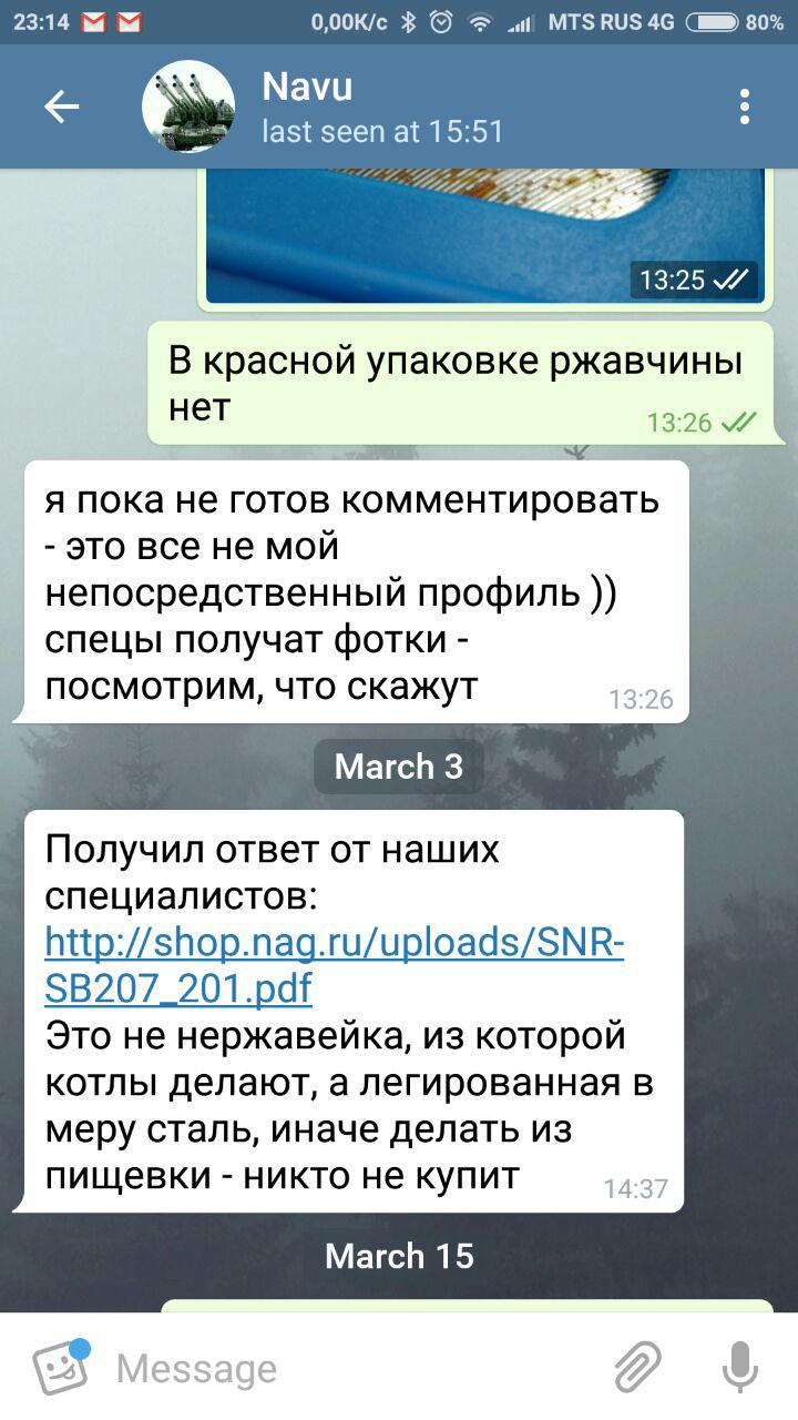 Bachaa Posted April 24, 2017 Про котлы и пищевую сталь гон знатный. ДО этого, значит из котлов пищевых делали? Просто говно толкнули, так бы и написали.... Вот ненавижу, когда такие отговорки, как будто клиент ***к. Ну извинились бы... мол Василий, прости, наш косяк. Больше у этого поставщика тариться не будем, напишем ему претензию, примем меры... Так нет. Надо прогнать что-то про котел. Когда же в России будет нормальный сервис. #вызываюпашу #пашапримимеры Share this post Link to post Share on other sites More sharing options...