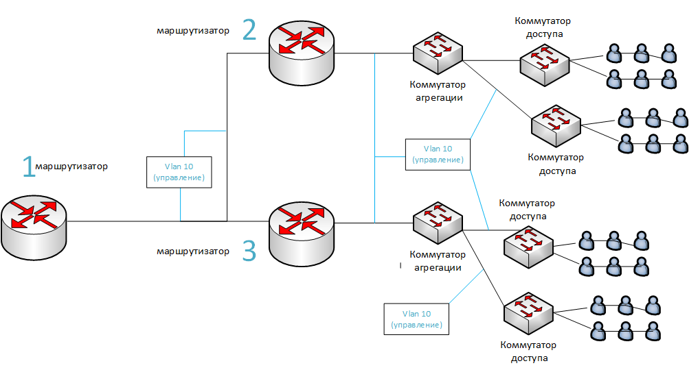 VolanD666 Posted May 15, 2017 да, правильно понимаете. Не совсем. feeman, какие подсети вы ставите и какой dot1q указываете не имеет значения, коммутации не получится, они не находятся в одном vlan, хотя и используют одинаковый vlanid. То, что вы описали - это L3-субинтерфейсы с dot1q-энкапсуляцией, терминаторы vlan, а собственно vlan (фактически bridge, возможный не везде) создается иначе, как interface vlan [vlanid]. Эммм.. что? Два саб-интерфейса смотрят друг на друга с одним влан ИД, трафик будет ходить, но роутер будет его отбрасывать, т.к. нет ИПа в этой подсети. ТС. Там где у вас агрегация- делайте общий влан управления и терминируете его на Л3 коммутаторах. Сами Л3 коммутаторы+ оборудование ядра- делаете линковочные подсети между ними, а сам ИП управления вешаете на лупбэк. В идеале- отдельный ВРФ для управления. Я бы сделал так Share this post Link to post Share on other sites More sharing options...