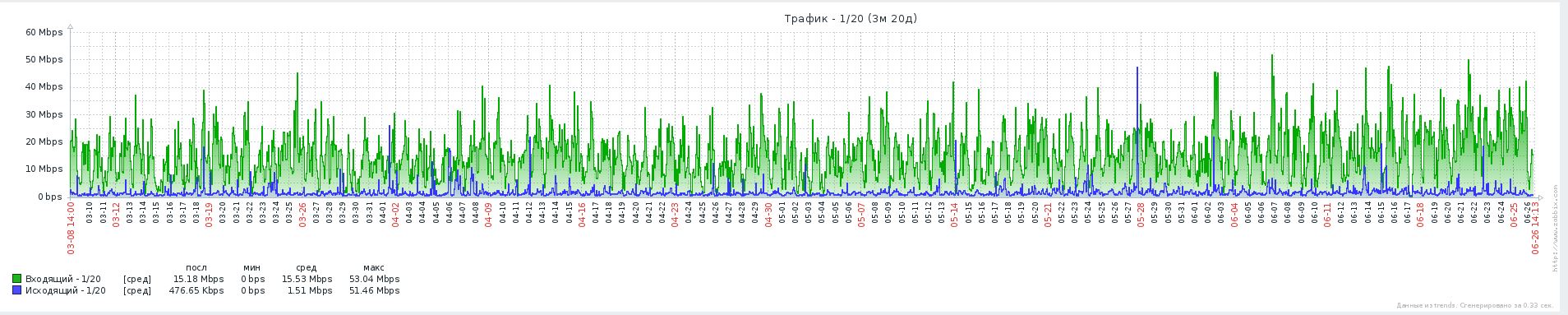 AlKov Posted June 26, 2017 да абонент в здравом рассудке и 100гб с трудом выберет за месяц 26 дней текущего месяца - Всего получено: 182822.524823 Mb. Всего отправлено: 18309.217780 Mb. Суммарный траффик: 201131.742603 Mb. Тариф - почти-что минимальный - 25 Мб/с Не скажу, что каждый второй, но таких явно не мало.. Вот 1Тб и более пока не видел. Вставить ник Quote Ответить с цитированием Share this post Link to post Share on other sites More sharing options...