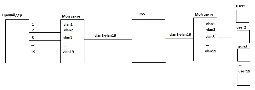 kaist Posted July 3, 2017 Posted July 3, 2017 apastal, поставьте между провайдером и микротиком свич, на своем свиче настраиваете access'ом разные вланы на портах, все эти вланы trank'ом отдаете с одного порта на микротик. На микротике создаете vlan интерфейсы и на них терминируте подключения. ЗЫ. пытаетесь воровать у провайдера и перепродавать дальше? может лучше договориться на агентскую схему? Вставить ник Quote