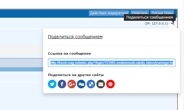 vodz Posted August 31, 2017 Posted August 31, 2017 12 часов назад, Navu сказал: Давайте пожелания и жалобы - в КЖиП. Здесь только особенности и нюансы. Да блин. Я и прокомментировал, что: "Если отправляете ссылку на сообщение кому-либо (а особенно модератору), пользуйтесь инструментом "Поделиться сообщением"," - это не особенность этой версии. Ибо ссылка на пост осталась там же где и была на старом форуме - на дате и времени поста. Правильнее было б сказать, что на новом форуме появился НОВЫЙ элемент для генерации ссылок для популярных соц сетей. Вставить ник Quote