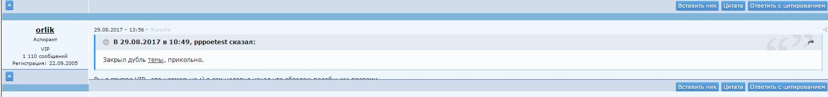 vodz Posted August 30, 2017 Posted August 30, 2017 1 час назад, Navu сказал: Если отправляете ссылку на сообщение кому-либо (а особенно модератору), пользуйтесь инструментом "Поделиться сообщением", чтобы ссылка была валидной для всех. Но ссылка на дату/время сообщение - эта та же самая ссылка и так и было на старом форуме. В новом - не подчёркнуто, как и всё остальное :( Вставить ник Quote