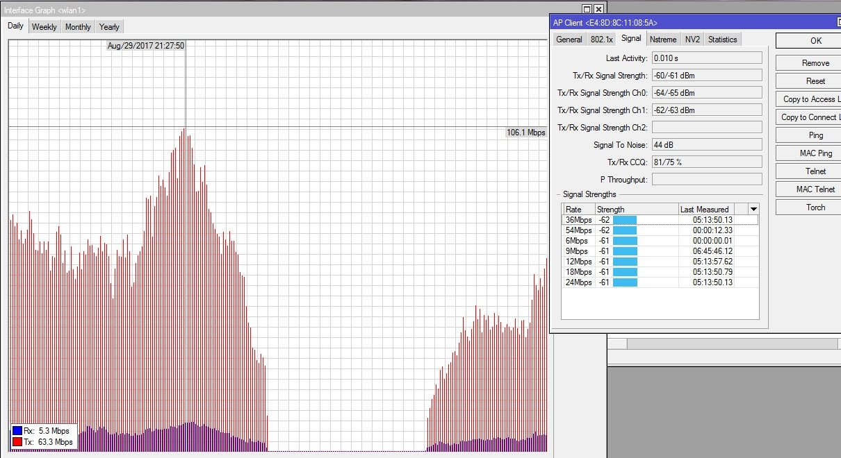 Unker Posted September 4, 2017 Какой протокол на микротике? У меня на расстоянии 30км два qrt работали вменяемо только nstreme с параметром exac size 3200 Share this post Link to post Share on other sites More sharing options...
