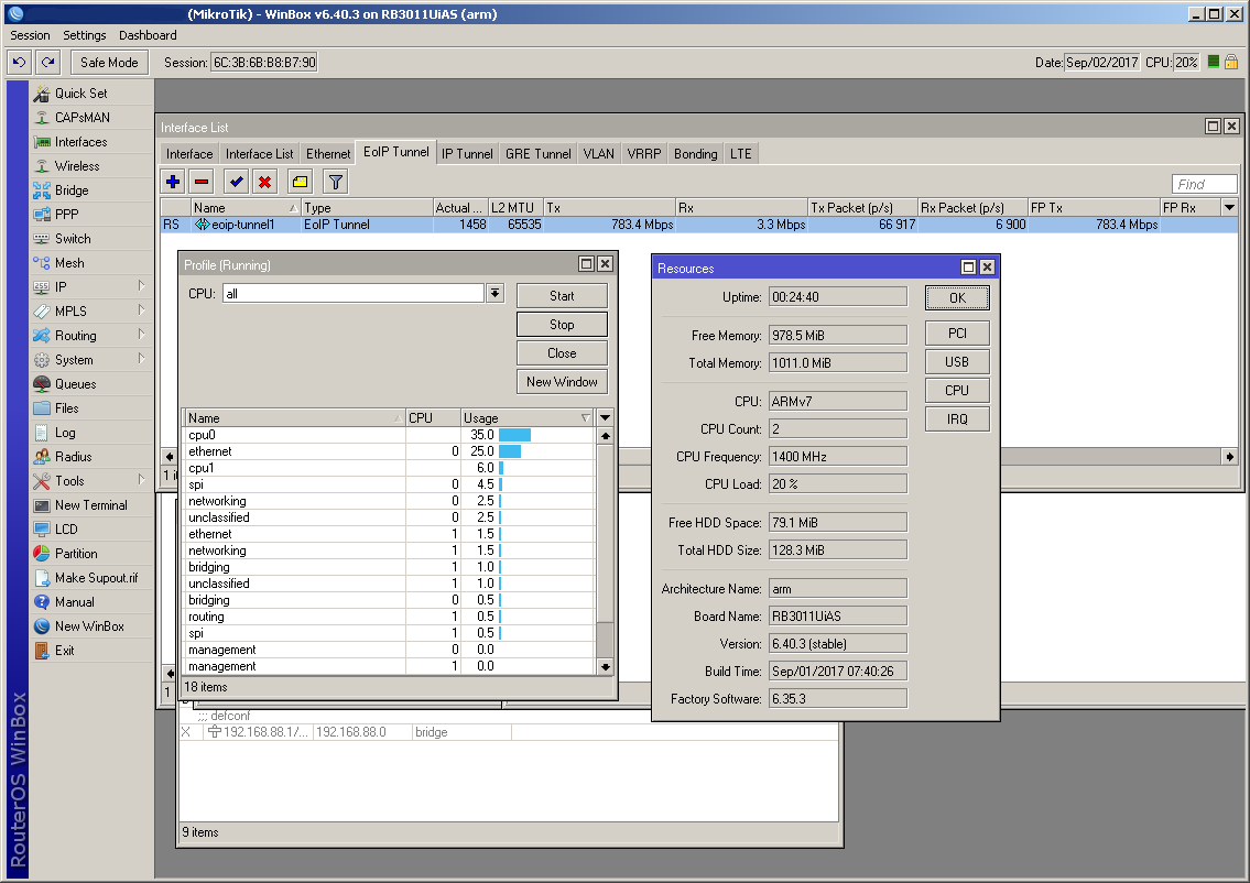 nkusnetsov Posted August 31, 2017 Negator , очень многое зависит от настроек EoIP-туннеля. Если его обернуть в IPSec, то увидите максимум 100Mbit (предел IPSec для 3011 в RoS 6.xx). При более мягком режиме, возможно и да. Если стоИт задача пробросить L2, то лучшую производительность показывает VPLS. Да, настройка чуть сложнее чем EoIP, но некоторый выигрыш в скорости будет. Share this post Link to post Share on other sites More sharing options...