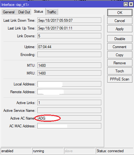 nkusnetsov Posted September 18, 2017 (edited) daff , создайте для PPPoE-клиента отдельный PPP-профиль. В свойствах профиля есть скрипты "on-up" и "on-down". В эти скрипты передается назначенный IP-адрес в виде переменной $local-address MikroTik wiki Анализируйте содержимое переменной, и по условию переключайте интерфейс enable/disable. Либо вызывайте из этого скрипта общий системный скрипт переподключения. Edited September 18, 2017 by nkusnetsov Share this post Link to post Share on other sites More sharing options...