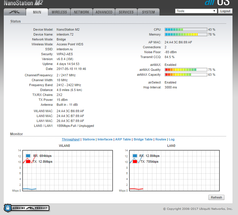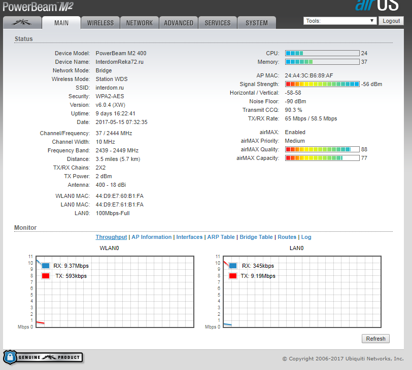 rdc Posted November 6, 2017 всё верно, мост не тянет апгрейдиться пора, ставьте Powerbeam 5AC-500 Share this post Link to post Share on other sites More sharing options...