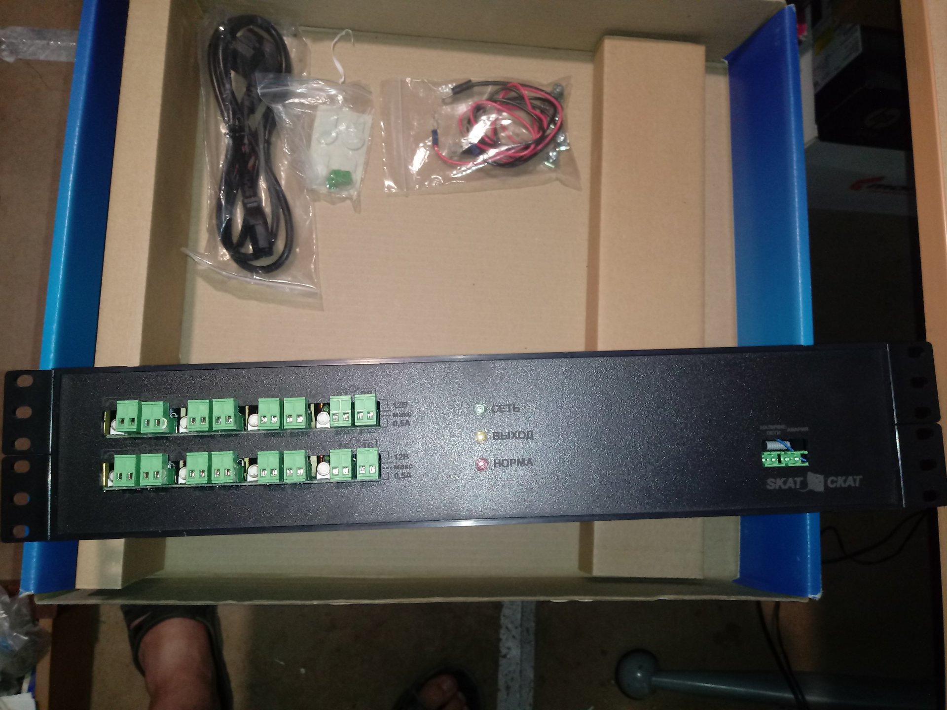 Sfida Posted December 1, 2017 Новый, в коробке. Цена 10тыс. руб. +7-968-556-0880 Павел, Москва. 19", 1 модуль 2U, 16 выходов по 0,5 А или 8 выходов по 1 А. ИСТОЧНИК ВТОРИЧНОГО ЭЛЕКТРОПИТАНИЯ РЕЗЕРВИРОВАННЫЙ ШЕСТНАДЦАТИКАНАЛЬНЫЙ SKAT-V.16 RACK Особенности. SKAT-V.16 RACK обеспечивает возможность плавной регулировки напряжения каждой пары выходов от 11,8 до 15,2 В фильтрацию помех для устранения взаимного влияния нагрузок электронную защиту выходов от перегрузки по току, в т.ч. — короткого замыкания, с восстановлением нормального режима работы после устранения перегрузки защиту нагрузки от повышенного выходного напряжения (свыше 18 В) при неисправности выходных преобразователей путем срабатывания самовосстанавливающегося предохранителя заряд АКБ от питающей сети, напряжением 220 В, 50 Гц согласно п.1 таблицы напряжением заряда АКБ согласно п.3 таблицы (режим «ОСНОВНОЙ») и током заряда в соответствии с п.6 таблицы автоматический переход в режим резервного питания нагрузок от АКБ, при отключении электрической сети защиту устройства и нагрузки от неправильного подключения (переполюсовки) клемм АКБ посредством плавкого предохранителя защиту от короткого замыкания клемм АКБ посредством плавкого предохранителя защиту АКБ от глубокого разряда в режиме «РЕЗЕРВ» путем отключения нагрузки от АКБ при снижении напряжения на клеммах АКБ до уровня, указанного в п.9 таблицы передачу извещений о наличии сети (переходе на резерв) и аварии ЗУ посредством выходов «открытый коллектор» защиту питающей сети от короткого замыкания в устройстве посредством плавкого предохранителя SKAT-V.16 RACK. Технические характеристики 1 Напряжение питающей сети 220 В, частотой 50±1 Гц с пределами изменения, В 180…250 2 Выходное напряжение каждого канала, В Минимальное значение 11,8…12,9 * Максимальное значение 14,6…15,2 3 Напряжение заряда АКБ при наличии сетевого напряжения и температуре окружающей среды 25 °C, В 27,2…27,8 4 Максимальный ток нагрузки каждого выхода, A, не более 0,5 **и*** 5 Ток ограничения каждой пары выходов при КЗ, A 2,5 6 Максимальный ток заряда АКБ, A 0,9…1,1 7 Снижение напряжения заряда АКБ при максимальном токе нагрузки, не более, 5 % 8 Ток, потребляемый изделием от АКБ в режиме отключения нагрузки по разряду АКБ, мА, не более 50 9 Величина напряжения на АКБ, при котором происходит автоматическое отключение нагрузки для предотвращения глубокого разряда АКБ в режиме «РЕЗЕРВ», В 21…22 10 Величина напряжения пульсаций с удвоенной частотой сети (от пика до пика) при номинальном токе нагрузки, мВ, не более 30 11 Мощность, потребляемая изделием от сети без нагрузки и АКБ, ВА, не более 30 12 Тип АКБ: герметичные свинцово-кислотные необслуживаемые, номинальным напряжением 12 В 13 Рекомендуемая емкость АКБ, Ач 26 14 Количество АКБ, шт. 2 15 Характеристики выходов в формате «открытый коллектор» напряжение, В, не более, 60 ток, мА, не более, 100 16 Максимальное сечение провода, зажимаемого в клеммах колодок, мм2 «Выход 12 В», «АКБ 24 В», «выходы открытый коллектор» 3,3 17 Габаритные размеры ШхГх Вставить ник Quote Ответить с цитированием Share this post Link to post Share on other sites More sharing options...
