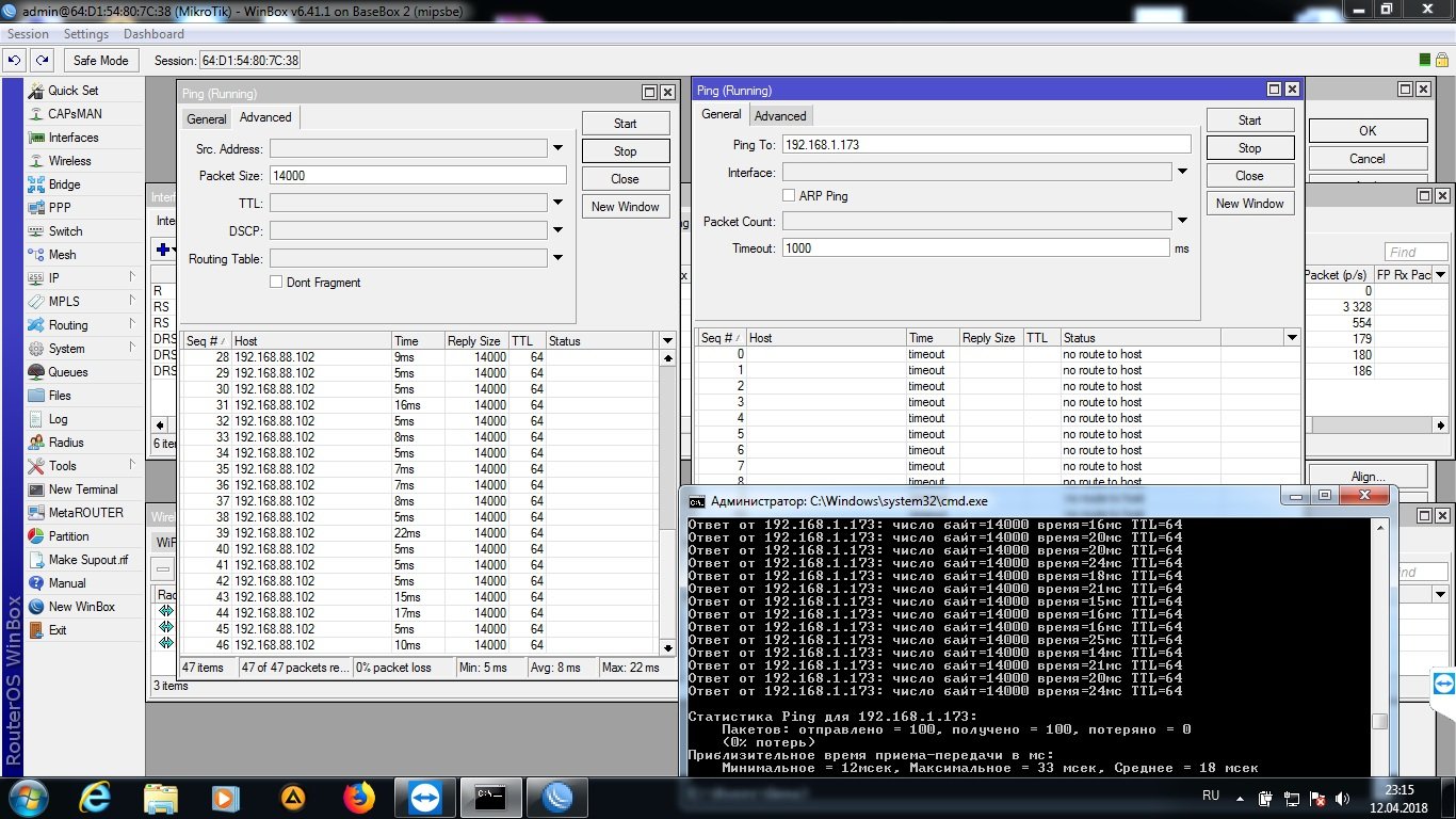 Saab95 Posted April 11, 2018 Posted April 11, 2018 На микротике через торч посмотрите трафик на портах, куда камеры подключены. Возможно там что-то еще идет, кроме самих данных от камер, например поток мультикаста, который разлетается по всей сети. Тут может помочь снятие галок с низких канальных скоростей, оставив только 12-13. Тем самым служебный трафик пойдет на более высокой скорости, а мультикаст как раз на самой низкой скорости и передается. Если хотите запускать пинги то делать это надо с микротика, указав размер пакета 1500 байт и интервал 100мс или менее, например 50, тогда потери, если они есть, станут видны. Вставить ник Quote