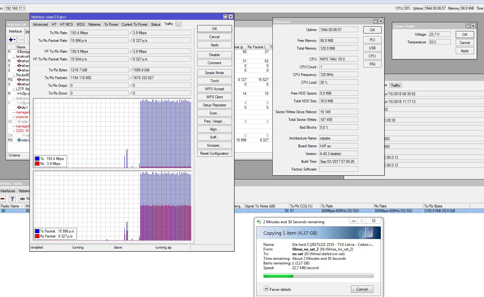 Saab95 Posted April 10, 2018 Posted April 10, 2018 2 часа назад, Constantin сказал: это какому контенту не хватает 100 мбит???? Наверно во время перемотки 4к эфирного видео картинка тормозит. У нас клиенты в частных домах тоже имеют большие новомодные телевизоры, но не хотят что бы он в грозу вылетел по сетевому порту, поэтому всегда просят подключить его по wi-fi (хотя про то, что спутниковый терминал через HDMI кабелем к приставке, а она к тарелке подключена как то не беспокоятся), устанавливаем специально только для ТВ микротик и настраиваем в режим G-only, скорость 20М, хватает для любых нужд, в том числе и просмотра видео с хранилищ. 1 час назад, McSea сказал: Стоял там же кинетик, ниже -60 не видел, Вы микротик плашмя на стол положили, или на подставку боком? Вставить ник Quote