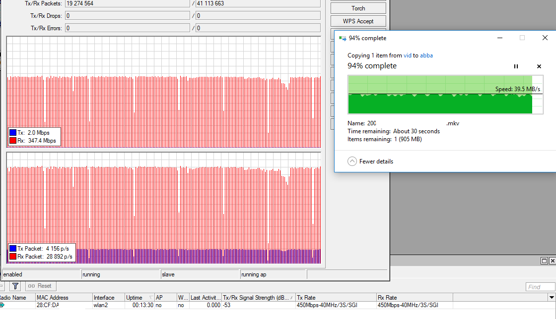 mafijs Posted April 10, 2018 Posted April 10, 2018 Как то так, при закачке файла на сервер по SMB /interface wireless set [ find default-name=wlan2 ] band=5ghz-a/n/ac channel-width=20/40mhz-Ce country=latvia disabled=no distance=indoors hw-protection-mode=cts-to-self mode=\ ap-bridge name=wlan2-5-ghz ssid=xxxxxxxx tx-power=3 tx-power-mode=all-rates-fixed wireless-protocol=802.11 Вставить ник Quote