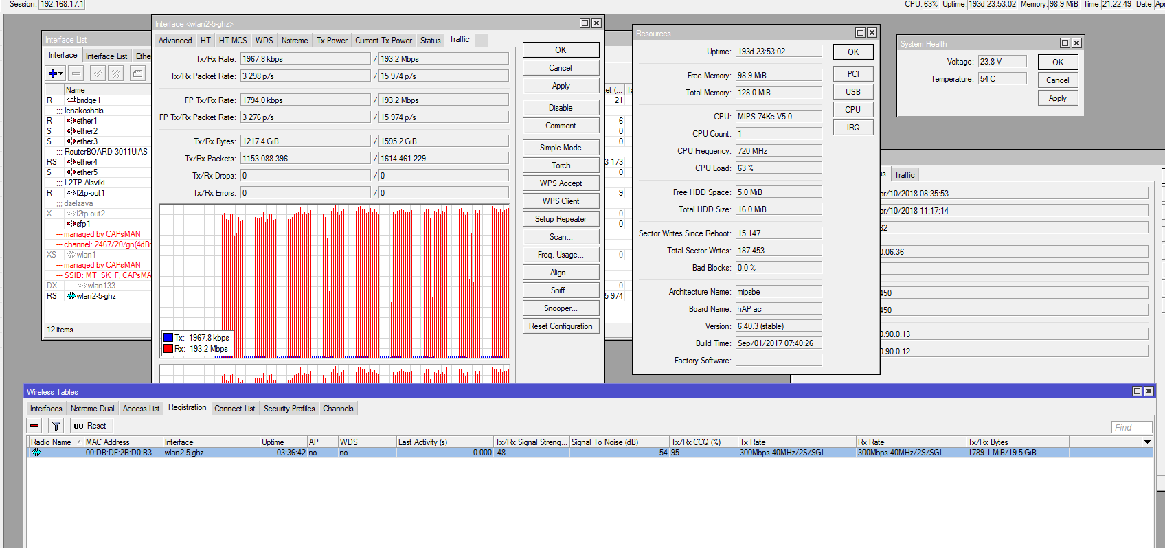 McSea Posted April 10, 2018 Posted April 10, 2018 (edited) @mafijs Я тоже могу красивых картинок показать :) Вот, тот же hAP AC, клиент Макбук про 2011 в 2 метрах прямо напротив. Однако, отходишь на несколько метров в сторону, и скорость падает раза в 2.5. И это мощный клиент, 3-поточный, хоть и старый N. Т.е. само железо (чипсет) нормальное, система(ОС) отличная. А вот с антеннами или чем-то еще в радио не совсем гут. Процессор еще слабоват именно для быстрого WiFi, больше 600Mbps реальной не может, хотя должна бы 1300x0.7=910. Edited April 10, 2018 by McSea Вставить ник Quote