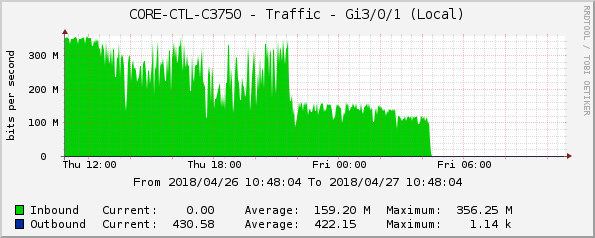 alibek Posted April 27, 2018 Делаю стриминг IP-камер в IPTV следующим образом. Есть сервер, на котором запускается VLC следующим образом: cvlc --vlm-conf=iptv.conf --ttl 5 где файл iptv.conf выглядит примерно так: new CH-102 broadcast enabled loop setup CH-102 input rtsp://usr:pwd@10.102.1.2/live/ch00_0 setup CH-102 output #std{access=udp,dst=239.0.1.2:1234} control CH-102 play То есть берется RTSP с камеры и направляется в мультикаст-группу. Чтобы направлялось куда надо, добавлен статический маршрут: $ netstat -nr Kernel IP routing table Destination Gateway Genmask Flags MSS Window irtt Iface ... 10.1.127.0 0.0.0.0 255.255.255.0 U 0 0 0 eth1 239.0.0.0 0.0.0.0 255.0.0.0 U 0 0 0 eth1 ... eth1 это интерфейс, подключенный в порт коммутатора, который является igmp querier, интерфейс сервера выглядит так: # ifconfig eth1 eth1 Link encap:Ethernet HWaddr 94:de:80:a1:9c:b1 inet addr:10.1.127.250 Bcast:10.1.127.255 Mask:255.255.255.0 UP BROADCAST MULTICAST MTU:1500 Metric:1 RX packets:0 errors:0 dropped:0 overruns:0 frame:0 TX packets:0 errors:0 dropped:0 overruns:0 carrier:0 collisions:0 txqueuelen:1000 RX bytes:0 (0.0 B) TX bytes:0 (0.0 B) Interrupt:20 Memory:f0500000-f0520000 Поломка выглядит так (график с порта igmp querier): Что-то произошло вчера примерно в 12 часов, потом стрим лихорадило примерно до 22 часов, потом трафик сильно упал, но стабилизировался, а потом примерно в 04:30 вообще пропал. И с тех пор сервер не стримит IPTV. Запускаю VLC с одним каналом CH-102, в логах самого VLC ошибок нет (изредка проскакивает ES_OUT_RESET_PCR, но для IP-камер это нормально). Если смотреть утилизацию интерфейсов с помощью утилиты iftop, то на входящем интерфейсе (по которому забираю RTSP) все нормально, трафик с камеры вижу. А вот на eth1 трафик вообще отсутствует, ни одного пакета. То есть поток с камеры забирается, куда-то отдается, но не могу найти — куда. Если смотреть статистику на порту коммутатора (igmp querier), то на input там так же нули. Вообщем трафик сервера вообще не идет в eth1, tcpdump даже случайных пакетов не показывает. Проверял файрвол, даже сервер перегрузил, когда фантазия кончилась, но ничего не поменялось. Такое впечатление, что сетевая плата просто сдохла, но причин для этого никаких не было и статус линка (при отключении патчкорда) меняется. Не посоветуете, что еще проверить? Вставить ник Quote Ответить с цитированием Share this post Link to post Share on other sites More sharing options...