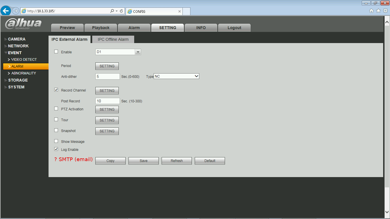 Sergey_Tula Posted May 1, 2018 Posted May 1, 2018 Добрый день. DHI-NVR2108HS-8P-S2, Web Version: 3.1.0.66469 System Version: 3.203.0000.0.R, Build Date: 2017-04-19. При попытке сделать Motion Detect, в настройках отсутствует пункт отправки на email. Подскажите пожалуста, есть ли возможность у данного nvr настройки для отправки по событию на email Вставить ник Quote