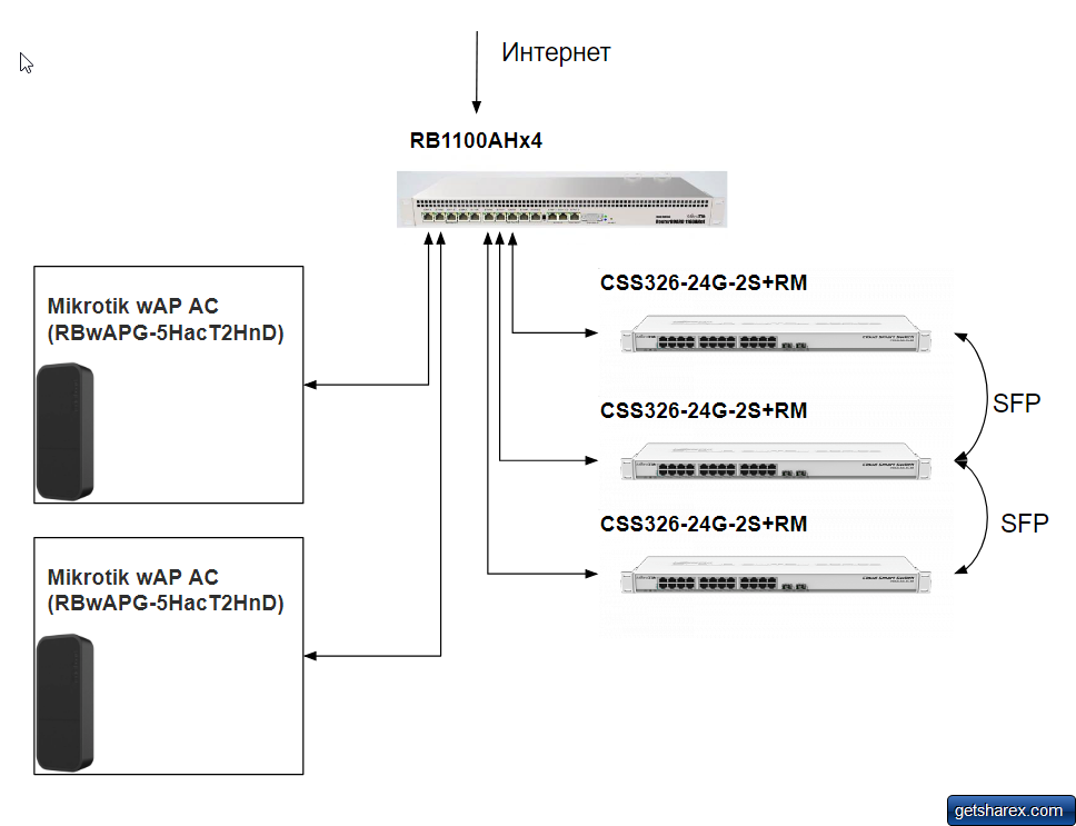 real-mielofon Posted July 10, 2018 Вопрос: вот такая схема Возможн ли настроить коммутаторы CSS так что бы локальный трафик между свитчами шел через SFP, а трафик в Интернет и на Wifi шел через роутер RB? А то так на вскидку получается петля и комп подключенный к коммутатору 1 до компа подключенному к коммутатору 2 например может идти по SFP и через роутер. Share this post Link to post Share on other sites More sharing options...