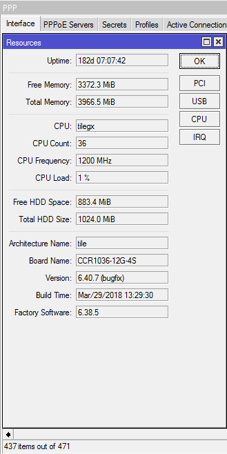 EShirokiy Posted October 6, 2018 Аптайм 1,5 дня, свободно 985,2 мегабайта оперативки. 6.43,трафика 0, работает в стенде. Share this post Link to post Share on other sites More sharing options...