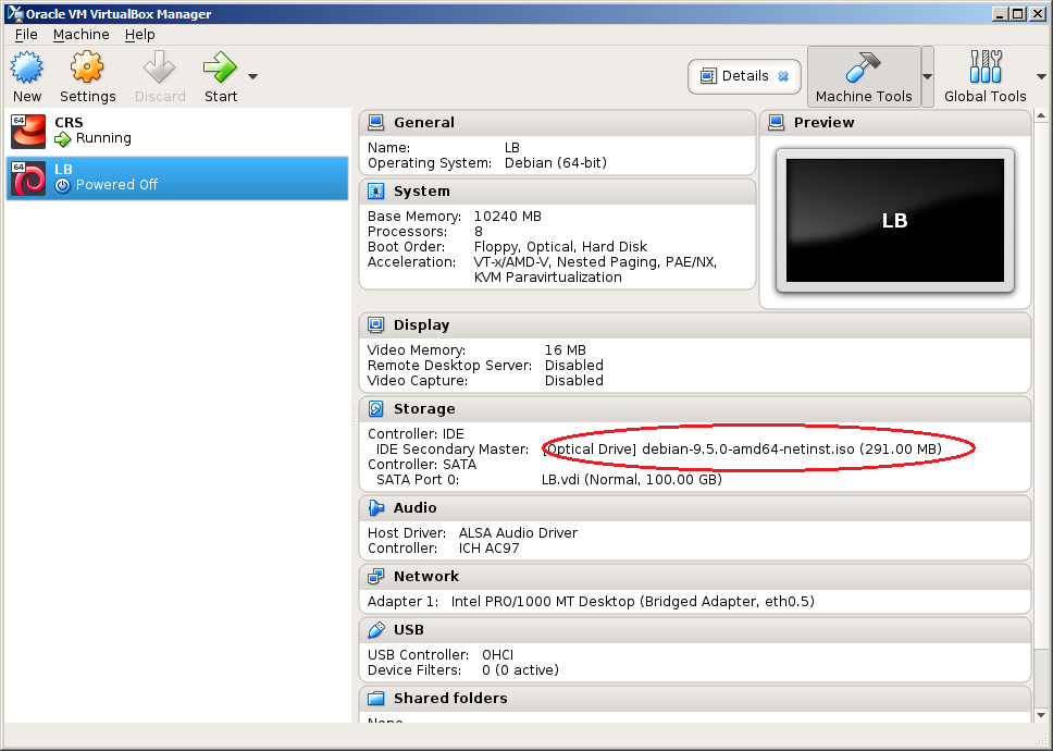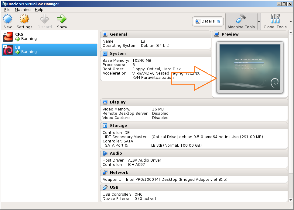 Andrei Posted December 9, 2018 Posted December 9, 2018 Хост система - сервер с Дебианом: root@alfa:/var/log# uname -a Linux alfa 4.9.0-7-amd64 #1 SMP Debian 4.9.110-1 (2018-07-05) x86_64 GNU/Linux Для виртуалок на нем - VirtualBox: root@alfa:/var/log# virtualbox --help Oracle VM VirtualBox Manager 5.2.14 Задался целью сделать виртуалку для переезда туда LanBilling. Создал пустую виртуалку, подмонтировал ISO с дистрибутивом: При попытке стартовать виртуалку: Если стартануть ее через "Headless start", то: и в режим окна для установки Debian переключиться не получается :( Что не так? Куда копнуть? Вставить ник Quote