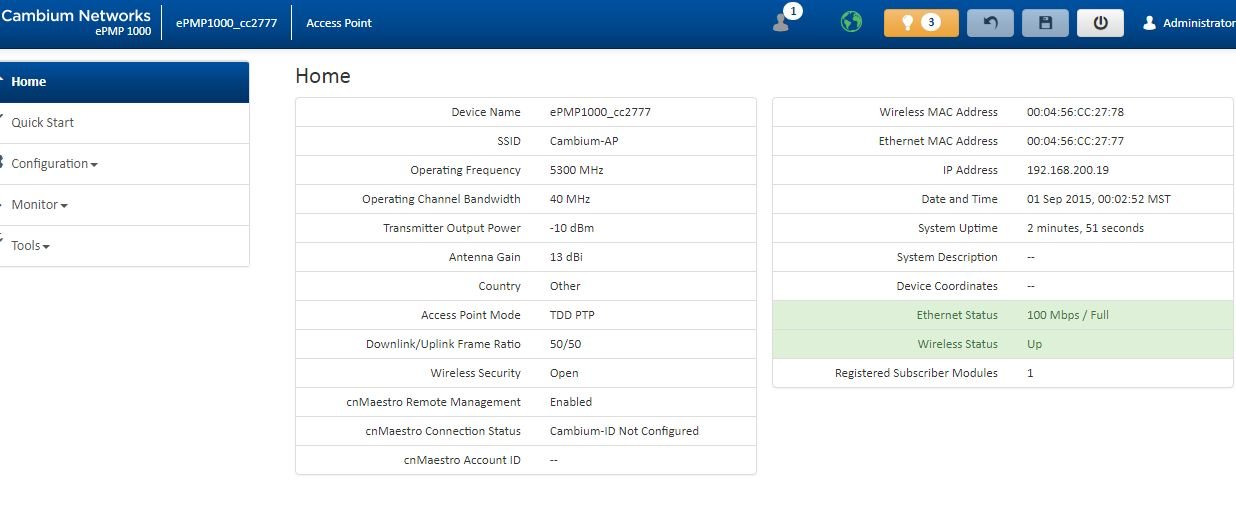 belokuriha Posted March 19, 2019 Posted March 19, 2019 День добрый. Не когда раньше не имел дел с камбиум . Прислали в ремонт , нужно проверить радио , думал настройка просто и не мучительно , а оказалась что заморочено все. на точке AP -выбираю регион россия ,выбираю частоту ,шифрование отключаю , нажимаю дискету , после ребут - жду начинается пинг на 192.168.0.1 -открывается WEBUI , все ок , но на телефон я не вижу точку хоть она и стоит в 5200 . на точке CPE -выбрать регион не дает , пишет что выбирается передающей точкой , сканировать не знаю как найти точку передатчик. Как их соединить не могу понять , и возможно ли это на клиентских точках. такие вот точки.