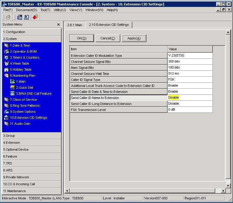 SUrov_IBM Posted June 2, 2019 Author Posted June 2, 2019 В 19.05.2019 в 13:17, SUrov_IBM сказал: Уважаемые знатоки телефонии, приветствую Вас! Предисловие: Имеется УПАТС Panasonic TDE 600, к ней по аналоговой линии в качестве extension подключён DECT Panasonic KX-TG1611RUW. Проблема: При вызове данного ТА, от УПАТС поступает «Caller ID number» и «Caller ID name». «Caller ID name» включает в себя русские символы, из-за этого на телефоне отображается «???...???». Проблема в том, что дисплей телефона отображает «Caller ID name» первой строкой, а «Caller ID number» второй. Но на дисплее всего одна полноценная строка и получается что вместо «Caller ID number» абонент видит «???...???». Собственно вопрос: Подскажите, имеется ли возможность запретить на конкретном аналоговом extension данной УПАТС прохождение «Caller ID name» оставив только «Caller ID number»? Отвечу сам себе, возможно кому-то пригодиться. Отключение передачи «Caller ID name» на конкретном аналоговом Extension, к сожалению я найти не смог. Но при беглом просмотре функций УПАТС выяснилось, что данный параметр можно отключить глобально, т.е. для всех аналоговых Extension. В моём случае, это решение приемлемо, поскольку на аналоговых линиях данной УПАТС нет ТА способных обработать «Caller ID name» с поддержкой кириллицы. 2. System -> 2.10 Extension CID Settings "Send Caller ID Name to Extension = Disable" Вставить ник Quote