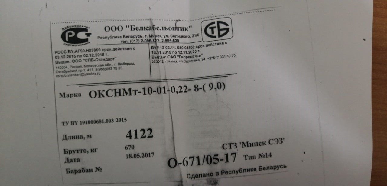telecom999 Posted July 19, 2019 Posted July 19, 2019 (edited) ОКСНМ-т-10-01-0,22-8-(9,0) Белтелекабель Барабан 4,1 км по 25р за метр. Кабель ОКСНМ предназначен для подвески на опорах линий связи, контактной сети железных дорог и столбах городского освещения. Кабель оптический подвесной, самонесущий магистральный, диэлектрический с центральным силовым элементом из стеклопластика, вокруг которого скручены оптические модули, содержащие до 24 оптических волокон, и кордели, с внутренней оболочкой из полиэтилена, периферийныйсиловой элемент – повив арамидных нитей, в защитной шланговой оболочкой из полиэтилена. ОК – оптический кабель; С – самонесущий; Н – неметаллический; М – многомодульный; т – вынесенный трос; Доставка по России через Транспортные компании, при оплате от Юридического лица +6% к сумме, Доставка за счет получателя. Территориально г.Магнитогорск. +7-967-747-87-77, эл.почта 7967747877@yandex.ru Edited July 25, 2019 by telecom999 Вставить ник Quote