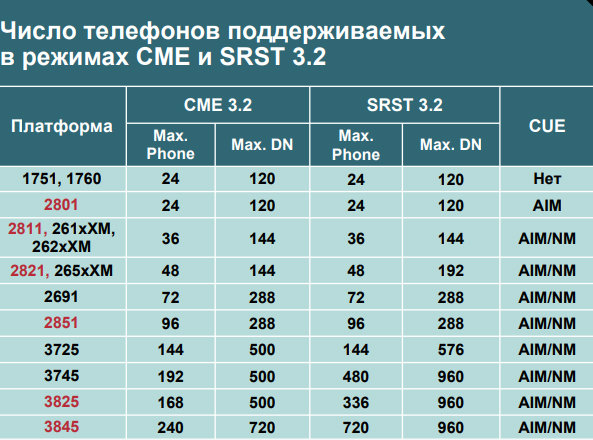 pitnah Posted July 26, 2019 Author Posted July 26, 2019 8 hours ago, sol said: 1. Кодеков мало. Даже "проброшенный прозрачно" один разговор сожрёт два кодека. Для полноценной работы 2-х потоков нужно 60 кодеков. 2. Диалпиров она "потянет" хоть три сотни. У меня сейчас 2651 с сотней имеется. И загрузка проца на ней 10%. Шлюзует один поток в IP. 3. Регистратором она тоже может быть. Кол-во регистраций на нагрузку заметным образом не влияет. 4. Памяти желательно добить, чтобы не страдать при выборе софта с нужным фичсетом. Благодарю за развернутый ответ. Сбивает с толку только вот такая информация (Таблица 1, Стр.8), что 2811 поддерживает 36 абонентов. Или это имеется в виду 36 одновременных вызовов, а регистраций на циске может быть хоть 100. И чем вызвано это ограничение? И еще вопрос: модуль VWIC2-2MFT-T1/E1 умеет в сигнализацию потока Е1? Или он так же как VWIC-2MFT-T1/E1 работает только через NM-HDV? Вставить ник Quote