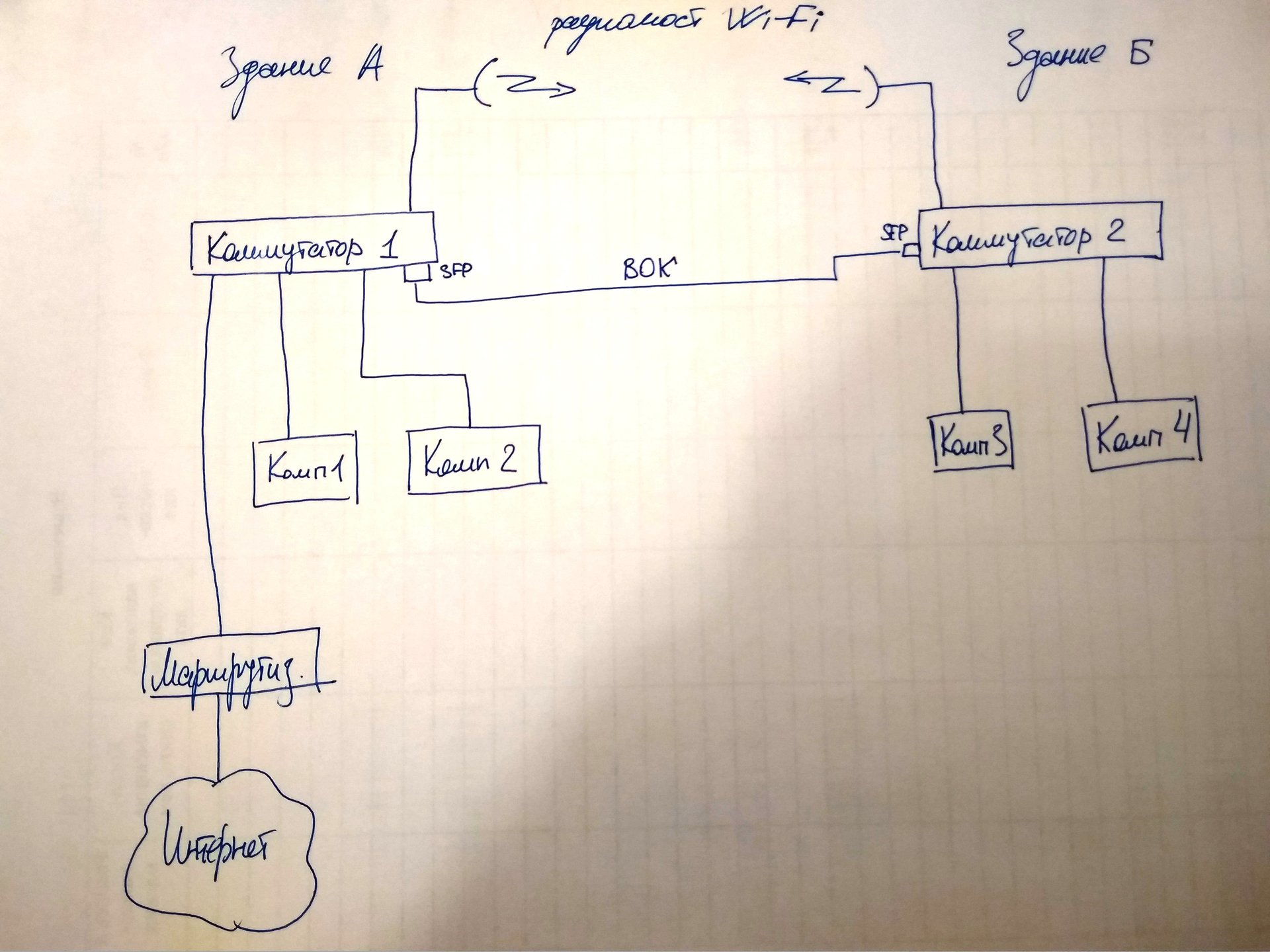 Mike84 Posted July 30, 2019 Posted July 30, 2019 Добрый день всем! Думаю создать вот такую сеть, которая включает два отдаленных здания. Между ними есть оптика, но обязательно нужно запасной беспроводной канал связи. все компьютеры (одного и второго зданий) находятся в одной сети (к примеру 192.168.0.0/24) (в сети до 10 пользователей - не так много). Что можно предпринять, чтобы если использовать беспроводное соединение, чтобы оно было достаточно защищенное? Конечно можно создать закрытое беспроводное соединение, скажем WPA2, использую пароль. Но этого маловато..., хотелось бы еще как-то защитить линию связи между коммутаторами (создать туннель vpn или...). Подскажите пожалуйста что-то дельное, лучше по инструкции. Коммутатор № 1 - D-Link DGS-1210-10, коммутатор № 2 - MikroTik RB260GS, маршрутизатор - MikroTik hEX RB750Gr3. Оборудование не панацея. Вставить ник Quote