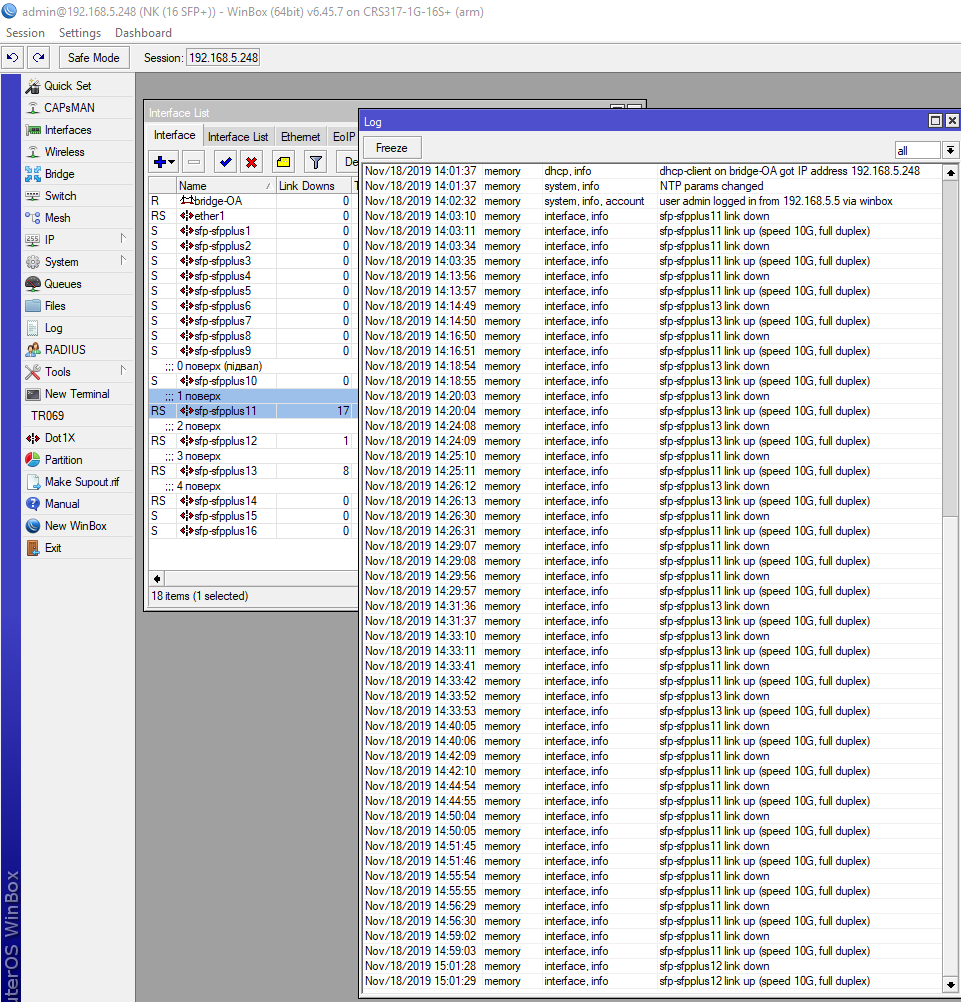 OstJoker Posted December 6, 2019 Posted December 6, 2019 (edited) Последнюю на момент настройки, это было недавно. RouterOS 6.45.7 Stable на всех устройствах, естественно с Firmware upgrade. Я прочитал всю ветку на форуме микротика, народ уже год пробует каждую новую версию в надежде фикса, но пока толку ноль. Вот вышла 6.46, может завтра на свободные девайсы накачу, которые на полке лежат, но что то слабо верится в чудо.... И в ченджлоге ничего об этом не написали. Внизу прикрепляю скриншот со своего девайса с логом падения портов. Edited December 6, 2019 by OstJoker Вставить ник Quote