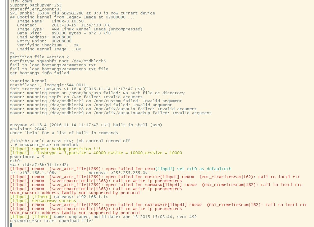 Vitalii61 Posted August 16, 2019 Камера Dahua HFW2320R-ZS-IRE6 в сети не видна, программой Конфиг тул не определяется. При подключении через UART использую программу SecureCRT. Информацию с флэш памяти получаю. При нажатии " * " должен попасть в DHBOOT но этого не происходит. Какие мысли могут быть по этому поводу? Как попасть в BOOT? Вставить ник Quote Ответить с цитированием Share this post Link to post Share on other sites More sharing options...