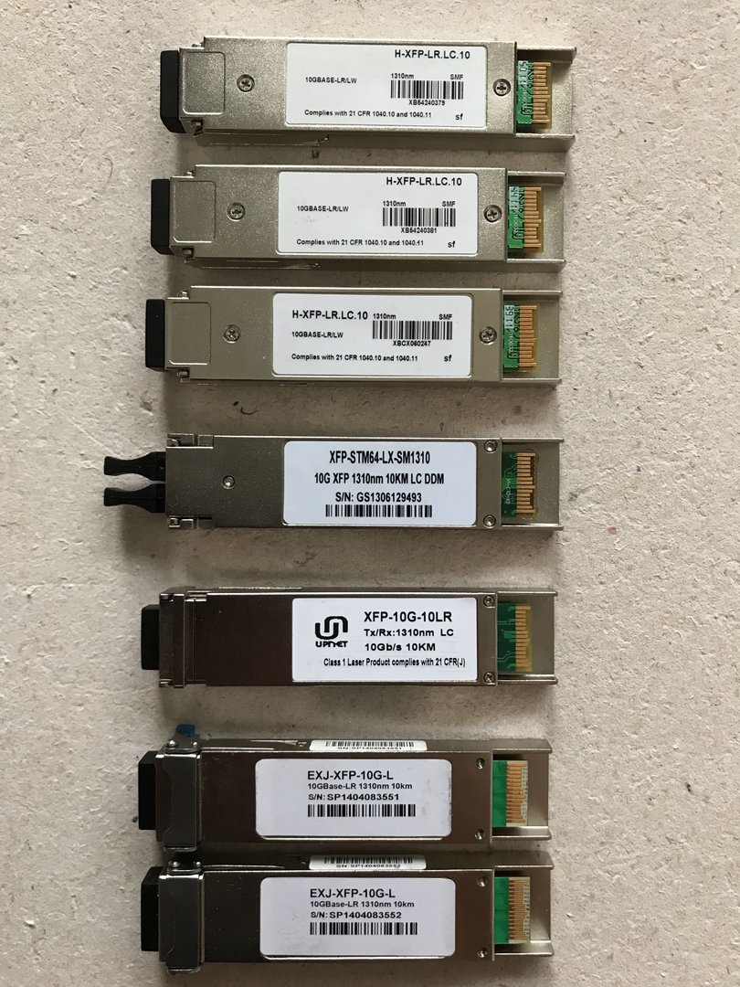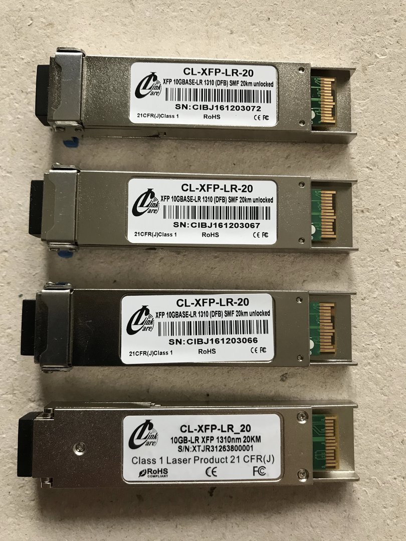 zip426 Posted August 19, 2019 Posted August 19, 2019 CareLink: CL-XFP-LR-20 (20км, 1310) - 4 шт. 1000 руб/шт, б/у Finisar: FTLX1412M3BCL (10км, 1310) - 3 шт. 800 руб/шт, б/у Остальные по 500 руб/шт: H-XFP-LR.LC.10 (10км, 1310) - 3 шт, б/у EXJ-XFP-10G-L (10км, 1310) - 2 шт, б/у XFP-STM64-LX-SM1310 (10км, 1310, DDM) - 1 шт, б/у Upnet: XFP-10G-10LR (10км, 1310) - 1 шт, б/у Все модули рабочие. Находятся в Ижевске. Возможна доставка по России. К.тел.: 951 2О48 (пять)11 Вставить ник Quote