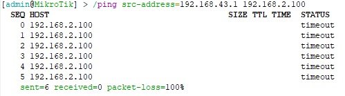 ShyLion Posted September 10, 2019 Posted September 10, 2019 тогда на 192.168.2.100 /ip route print и на исходном тике /ping src-address=192.168.43.1 192.168.2.100 Вставить ник Quote