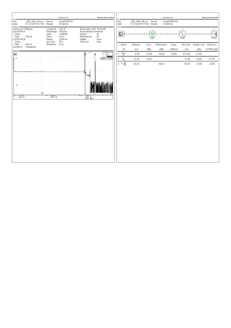 Hoper Posted December 22, 2019 Author Posted December 22, 2019 Загиб. В более современных рефлектометрах с функциями SLM (и другие названия) ,при измерении на 2 длинах реф сам пытается выставить событие и обозвать его загибом.Я так привык всё таки по старинке смотреть и вдобавок автоанализ не совсем точный,приходится подчищать события. Вставить ник Quote