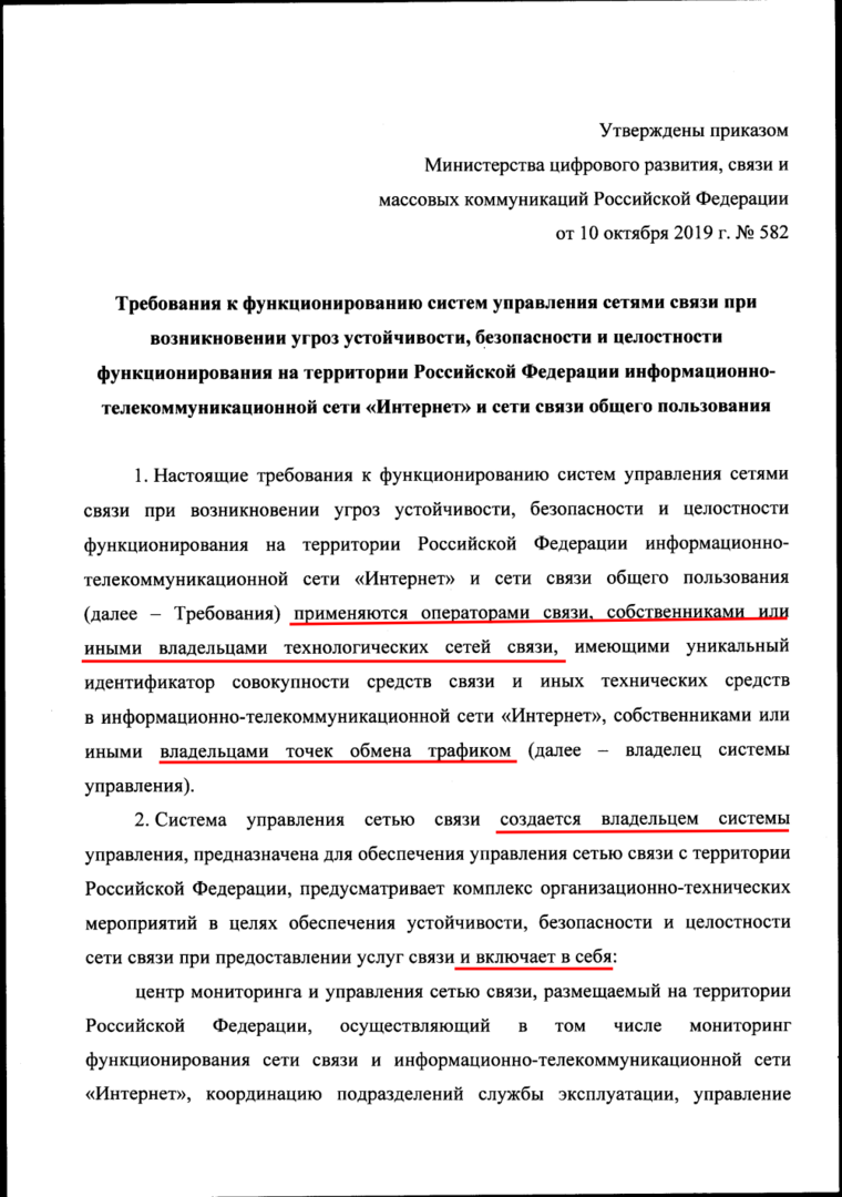 Связной (С) Posted January 15, 2020 Posted January 15, 2020 Операторы связи, собственники и владельцы технологических сетей, имеющих номер АС, владельцы точек обмена трафиком создать: - центр мониторинга и управления . - автоматизированные системы управления сетью связи АСУ. - дежурно-диспетчерские службы. Приказ Минкомсвязи от 10.10.2019 № 582 Требования к функционированию систем управления сетями связи при возникновении угроз целостности, устойчивости и безопасности функционирования сети «Интернет» и сети связи общего пользования. Вставить ник Quote