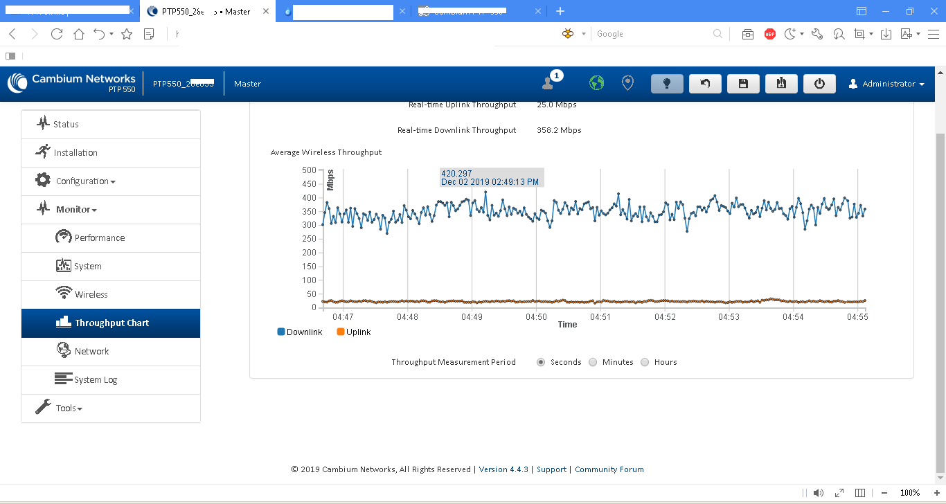 slv700 Posted January 31, 2020 Posted January 31, 2020 Вот недавно снят скрин с линка PTP550 в канале 1x80 MHz, дальность 6 км. Живой трафик в праймтайм max DL 420 Mbps + UL 40 Mbps.
