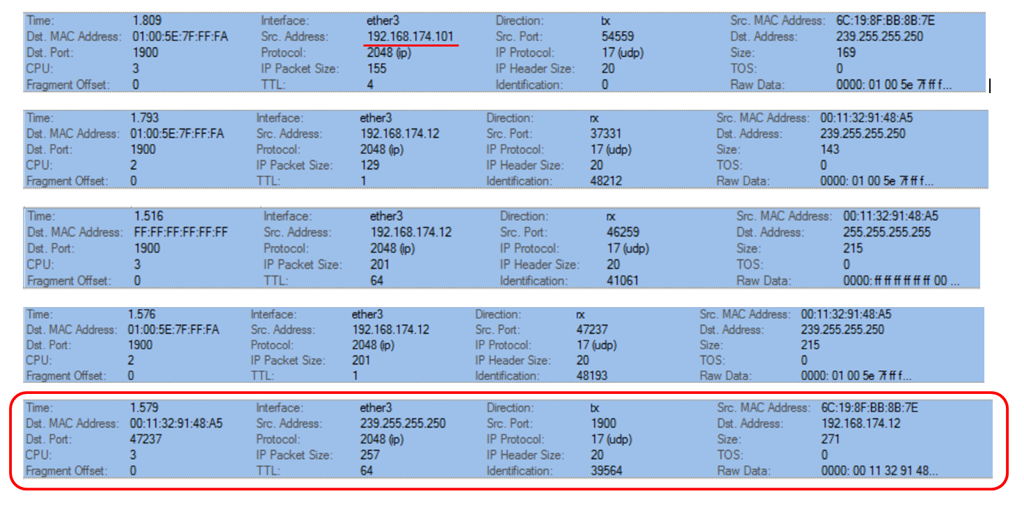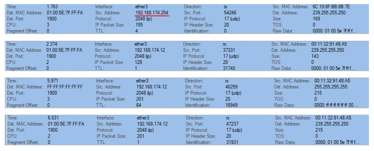 Морфеус68 Posted February 5, 2020 Author Posted February 5, 2020 (edited) Посниффил пакетики в момент, когда клиент ищет сервер... вот, что получается: 1) Рабочий режим, DLNA работает - клиент видит сервер. Ip Firewall в бридже выключен! На порту DLNA-сервера: На порту DLNA клиента: 2) НЕрабочий режим, DLNA не работает - клиент НЕ видит сервер. Ip Firewall в бридже включен! На порту DLNA-сервера: На порту DLNA клиента: Цветом выделил один отсутствующий фрейм, и разницу в адресации при рабочем и нерабочем режимах. Я так чуствую надо PIM пакет ставить... Edited February 5, 2020 by Морфеус68 Вставить ник Quote
