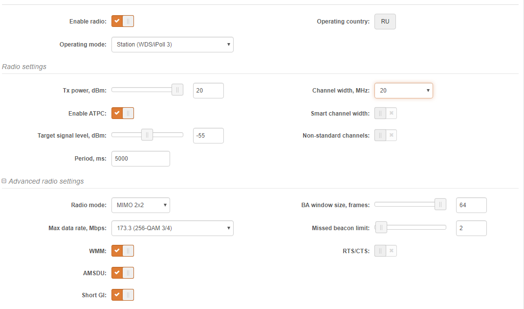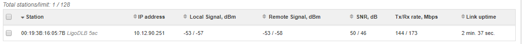 suhrab Posted April 14, 2020 Posted April 14, 2020 (edited) Добрый день, решили потестить Ligowave взяли DLB 5AC антенна Mikortik mant30. Точка - точка расстояние около 5км -53/-57 максимально прожимает 50 мбит И ширина канала на клиенте почему то выше 20 поставить нельзя. Прошивка APCPE.QA-2.v7.65.78868 Edited April 14, 2020 by suhrab