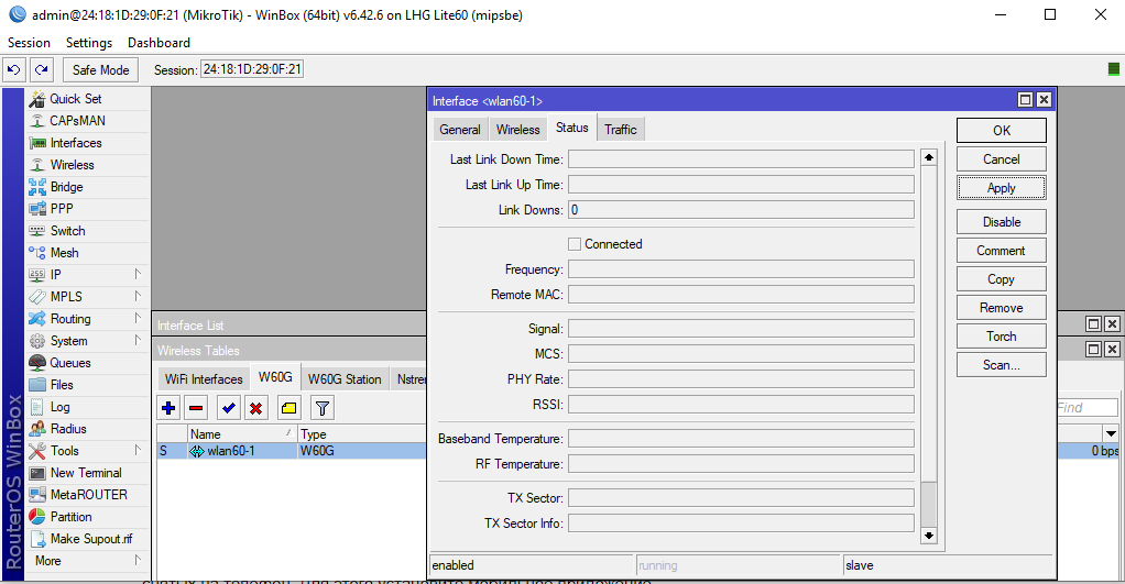 toscha_sv Posted April 17, 2020 Posted April 17, 2020 Доброго времени, Форумчане. Не могу разобраться в настройках. Есть одна MikroTik wAP 60G AP и к ней 8 штук RBLHG-60ad. На оборудовании не активны диоды радиосигнала и складывается ощущение, что функция не активирована или я что-то не то делаю. Вставить ник Quote