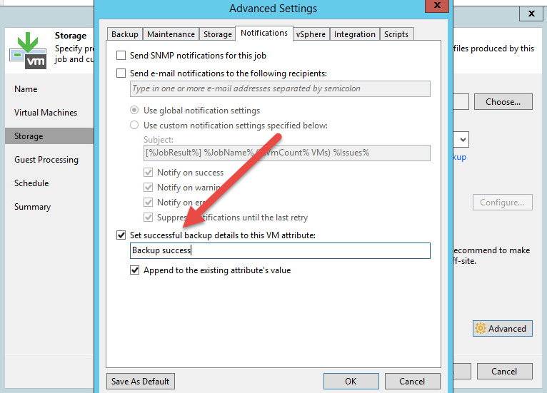 FATHER_FBI Posted August 29, 2020 Posted August 29, 2020 (edited) В 24.08.2020 в 11:57, catalist сказал: не не наш вариант, слижком сложно, заюзали вариант с одним большим джобом Да вы с ума сошли! Есть же готовый способ, или вы не читали мануал к veeam? Ставите галочку на Set successful backup details to this VM attribure: В результате получите вот это А дальше эти поля можете дергать через PowerCLI или смотреть визуально, какая ВМ бекапится, а какая нет Edited August 29, 2020 by FATHER_FBI Вставить ник Quote