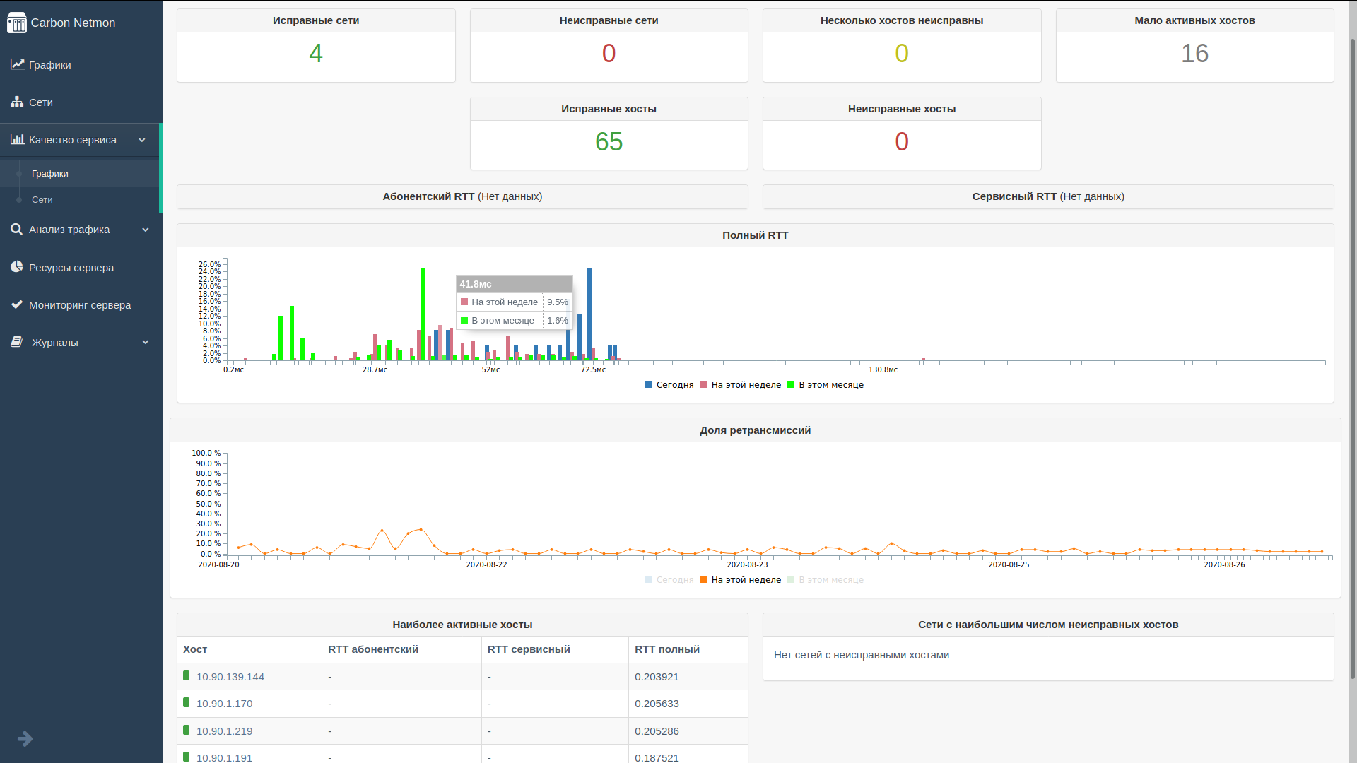 Haus3918 Posted August 27, 2020 Posted August 27, 2020 Carbon NetMon - это система мониторинга сети и поиска неисправностей с элементами DPI. Для анализа сети используется поданное зеркало трафика на сервер. Зеркало проходит предварительную фильтрацию с помощью специального алгоритма, что позволяет анализировать большие объёмы трафика и при этом избегать ложных срабатываний. На текущий момент среди основных функций присутствуют: Мониторинг сегментов сети Статистика активности собирается по отдельным хостам и объединяется в подсети (/24). Если у большинства хостов в сети пропал трафик - она считается неисправной. Обнаружение аномальных всплесков трафика Позволяет администраторам информационной безопасности выявлять сетевые угрозы и обеспечивать безопасность пользователей, а также контролировать нагрузку на свою сеть. Анализ качества сервиса, предоставляемого абонентам Система анализирует трафик всех абонентов или заданного сегмента сети, выявляя проблемы с качеством сервиса. Анализируются такие параметры как доля TCP-ретрансмиссий и полный RTT по всем сессиям у абонента. RTT делится на полный, на то что происходит на абонентской стороне, что происходит на стороне сервисов, к которым обращается абонент. Анализ потребления канала абонентами Позволяет выявить кто именно потребляет канал и в каком соотношении. Анализ потребления канала абонентами выводит информацию о числе пакетов и объёмах входящего и исходящего трафика. Если абонентов в анализируемой сети много - данные можно автоматически сгруппировать по подсетям. Из промежуточных результатов можно вызвать дальнейший анализ трафика по выбранной подсети или абоненту и таким образом добраться до источника проблемы с каналом. Сетевая диагностика абонента Дает возможность максимально глубоко разобраться в проблемах абонента, выявленного с помощью инструмента "Обнаружение абонентов с плохим качеством сервиса". QOE Собираются и анализируются показатели ретрансмиссий и RTT для сети и хоста. Оповещения Информирование по email и смс о инцидентах на сети. Для ознакомления доступен бесплатный демо период на 30 дней. Ознакомится с Carbon NetMon можно на нашем сайте. Более подробная информация по продукту размещена в документации. Вставить ник Quote