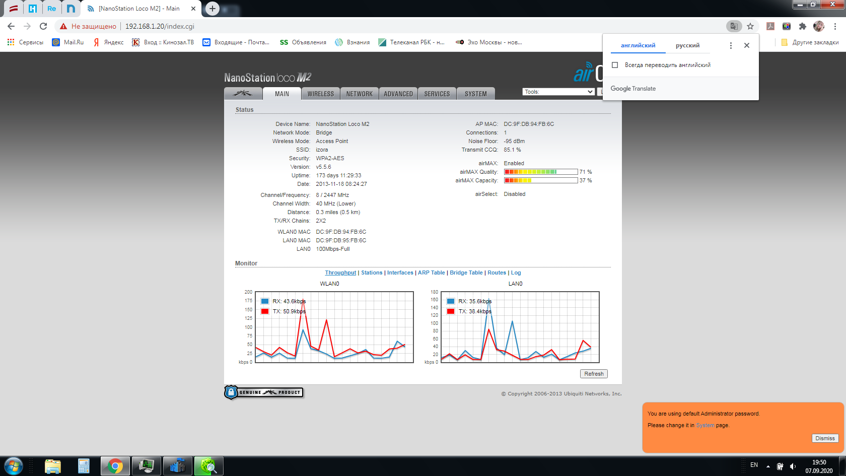 izora Posted September 10, 2020 Author Posted September 10, 2020 11 часов назад, rhianon_88 сказал: что значит теряется 50? 50 чего? расшифруйте. у вас тариф 100, а получаете 40 на клиенте? или как? скорость не теряется на клиенте если что. а вообще я вижу попку в эфире и хреново направленые антенны. мощность передатчиков на сколько выставлена? Когда замеряешь на базе, получается где-то 80. На клиенте в максимуме 30. База стоит на 10 этаже многоэтажки. Клиент - частный дом, между ними чистое поле. Мощность выставлена на максимуме( пробовал уменьшать, как пишут, но получается еще хуже) Думаете антенны переставить? В 07.09.2020 в 23:29, npokypop сказал: Как минимум вижу большую Ж в эфире. Переходить на 5ггц и ставить узконаправленные антенны. Микротик! Менять уже ничего не буду. Придется как-то минимизировать эту Ж) В 07.09.2020 в 23:28, NewUse сказал: обновите прошивку до 5.6.15 Обновил до последней, и как ни странно стало получше. Может совпало:)) Вставить ник Quote