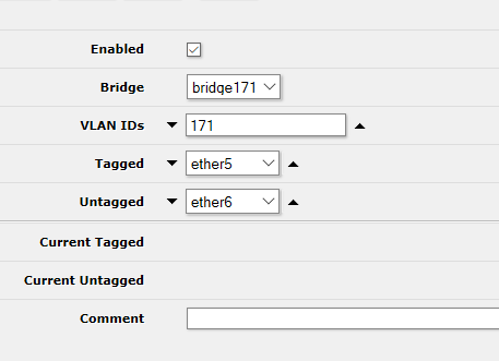 tits Posted October 1, 2020 Posted October 1, 2020 Есть такая конфигурация Т.е ether6 pvid = 171 - порт доступа за ним компьютер 192.168.171.250 Ether5 - транк порт остальные порты в bridge Я вставляю провод в ethe3 прописываю шлюз 192.168.1.242 Пробую пинговать 192168.171.250 - пингуется Если включаю vlan-filtering=yes то пинг пропадает Я не понимаю зачем эта опция нужна? Что она дает? И почему пропадает пинг? Вставить ник Quote