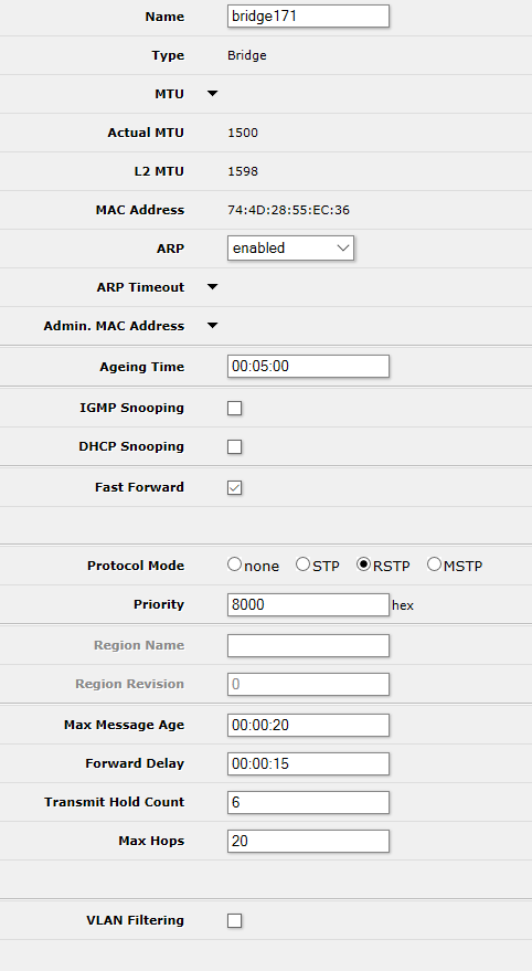 jffulcrum Posted October 3, 2020 Posted October 3, 2020 vlan filtering означает, что процессом занимается мост (и свитч-чип, если поддерживается), а не CPU. Пинг пропадает, так как при vlan-filtering надо правильно указывать PVID, для моста и портов, VLAN добавлять в свойствах моста, а VLAN как интерфейсы создавать только те, для которых хотите присваивать адреса и маршрутизировать трафик именно на этом устройстве. Если у вас там всего несколько VLAN и трафика не в полку - можете не делать vlan filtering и работать по старинке, разницы не заметите. Вставить ник Quote