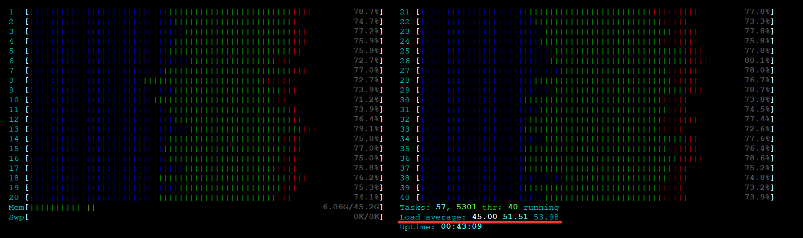fox_m Posted March 11, 2021 Posted March 11, 2021 Коллеги, привет! На сервере Ubuntu 18.04.2 установлен энкодер live видео потоков. Сервер имеет 40 ядер и 46 Гб ОП. На данный момент, он загружен так: Вопрос, это уже критичная нагрузка для него или нет? С одной стороны по ЦП и ОП есть запас, но с другой стороны, load avarage практически максимальный. Если это критично, то сервер развернут на виртуальной платформе ESXi 6.7 Вставить ник Quote