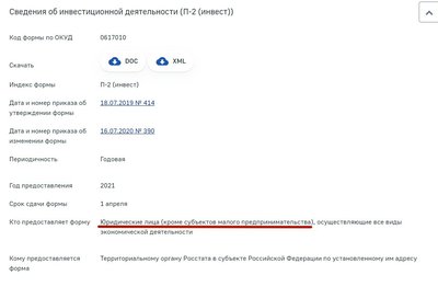 Fint Posted April 9, 2021 Posted April 9, 2021 (edited) 12 минут назад, Andrei сказал: Название старое, их переутверждают каждый год - см. https://statreport.ru/rest/data-publication/download/154 Так что форма "каждый год как новая" :) Там тоже самое. Не суть. Я не пойму почему мы не сдавали ни разу это. До 15 года статистику тоже сдавали? До 15 года было ООО, но тоже ничего такого не сдавали. С точки зрения Росстата (правда по другому приказу и формам), ЮЛ и ИП разные сущности: Цитата Респондентами федерального статистического наблюдения за платными услугами населению являются: юридические лица; физические лица, осуществляющие предпринимательскую деятельность без образования юридического лица (индивидуальные предприниматели); адвокатские образования, кроме адвокатов, учредивших адвокатские кабинеты. К группе юридических лиц относятся организации, официально зарегистрированные в Едином государственном реестре юридических лиц в одной из организационно-правовых форм, предусмотренных Гражданским кодексом Российской Федерации. Они подразделяются на следующие категории хозяйствующих субъектов: организации, не относящиеся к субъектам малого и среднего предпринимательства, среднесписочная численность работников которых превышает 15 человек; организации, не относящиеся к субъектам малого и среднего предпринимательства, среднесписочная численность работников которых не превышает 15 человек; средние предприятия; малые предприятия; микропредприятия; некоммерческие организации, в том числе государственные автономные и бюджетные учреждения. Категория субъектов малого и среднего предпринимательства определяется в соответствии с наибольшим по значению условием, установленным пунктами 2 и 3 части 1.1 статьи 4 Федерального закона от 24 июля 2007 г. N 209-ФЗ "О развитии малого и среднего предпринимательства в Российской Федерации". Индивидуальными предпринимателями, согласно статье 11 части первой Налогового кодекса Российской Федерации, являются физические лица, зарегистрированные в установленном порядке и осуществляющие предпринимательскую деятельность без образования юридического лица, главы крестьянских (фермерских) хозяйств. Индивидуальные предприниматели и главы крестьянских (фермерских) хозяйств с учетом сведений Единого реестра субъектов малого и среднего предпринимательства (ЕРМСП) о категории предприятия подразделяются на следующие типы предприятий: малое предприятие; среднее предприятие; микропредприятие. Edited April 9, 2021 by Fint Вставить ник Quote